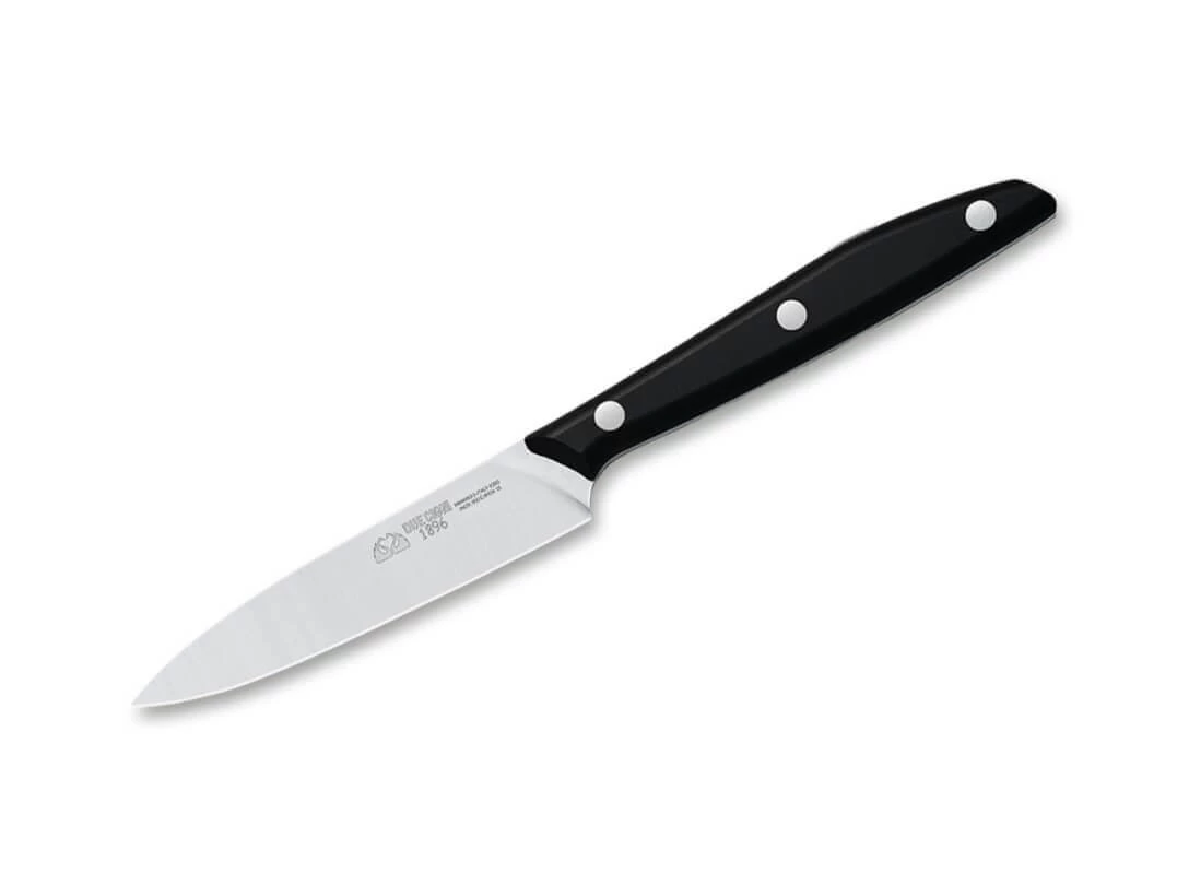 Mit der Serie 1896 stellt Due Cigni eine besonders hochwertige Küchenmesserserie vor, die das Sortiment des Herstellers aus der traditionellen Messerstadt Maniago krönt. Mit Griffen aus widerstandsfähigem POM liegen die Messer ausgezeichnet in der Hand, wobei die klassische Vernietung die optische und haptische Balance perfektioniert. Für die Klingen kommt der bewährte X50CrMoV15 zum Einsatz, der Schnitthaltigkeit und Korrosionresistenz perfekt vereint.