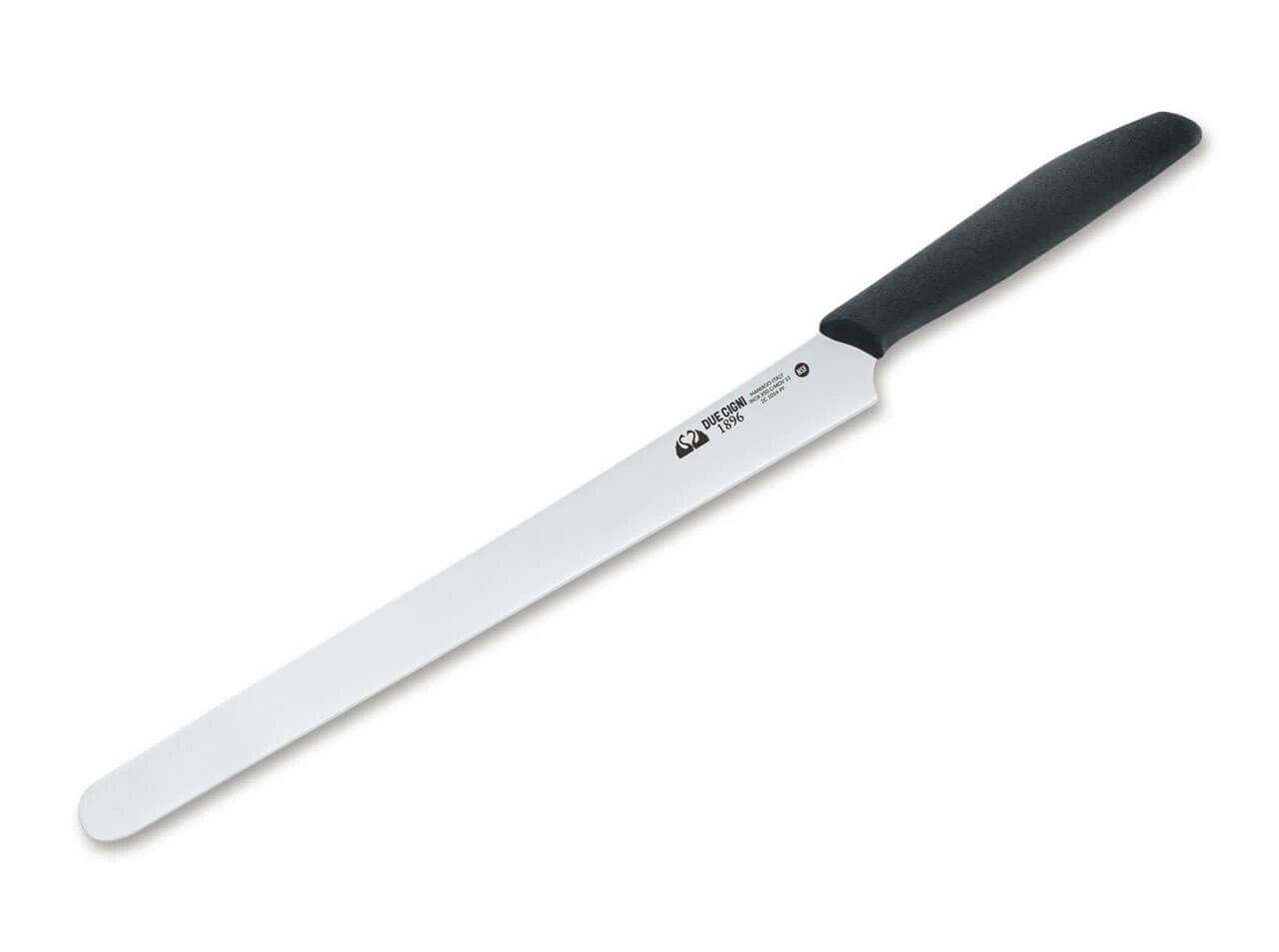 Mit der Serie 1896 stellt Due Cigni eine besonders hochwertige KĂŒchenmesserserie vor, die das Sortiment des Herstellers aus der traditionellen Messerstadt Maniago krönt. Mit dem Griff aus widerstandsfĂ€higem Polypropylen liegt das 1896 Schinkenmesser 26 PP ausgezeichnet in der Hand und lĂ€sst sich problemlos reinigen. FĂŒr die Klingen kommt der bewĂ€hrte 4116 zum Einsatz, der Schnitthaltigkeit und Korrosionresistenz perfekt vereint.