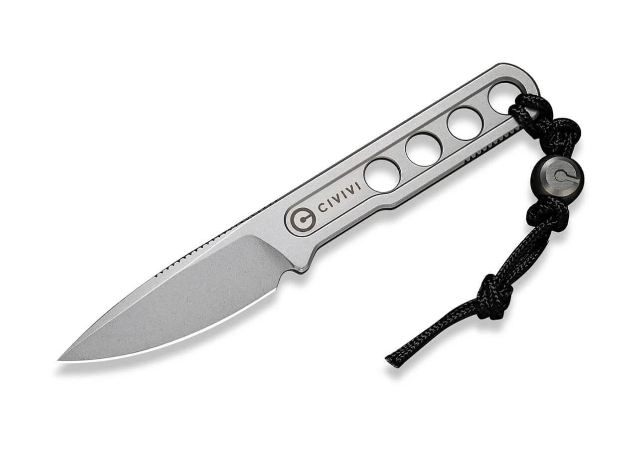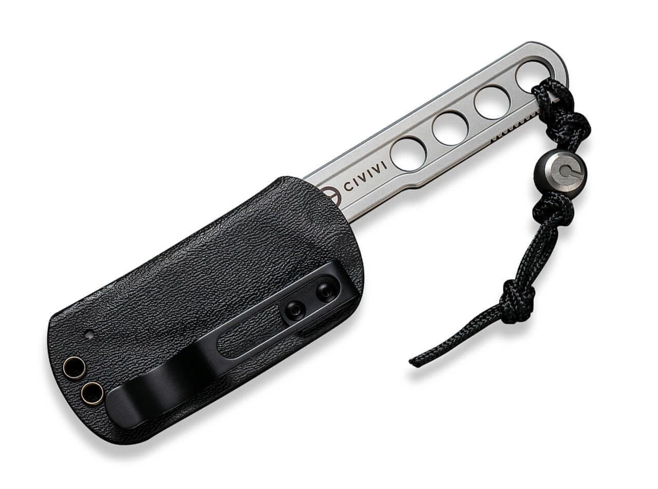 Taktisch praktisch: Das kompakte Neck Knife von Ostap Hel hinterlässt im Alltag einen souveränen Eindruck und vereint minimalistisches Design mit kompromissloser Performance. Die Ganzsstahlkonstruktion aus 10Cr15CoMoV mit flachgeschliffener Droppoint-Klinge erledigt selbst schwierige Einsätze mühelos. Der Edelstahlgriff ist mit vier großen Aussparungen versehen, die das Gewicht reduzieren, die Haptik verbessern und viele Befestigungsvarianten erlauben. Riffelungen am Griff und Klingenrücken erhöhen die Arbeitssicherheit zusätzlich. Mit passgenauer Kydexscheide und Kugelkette.