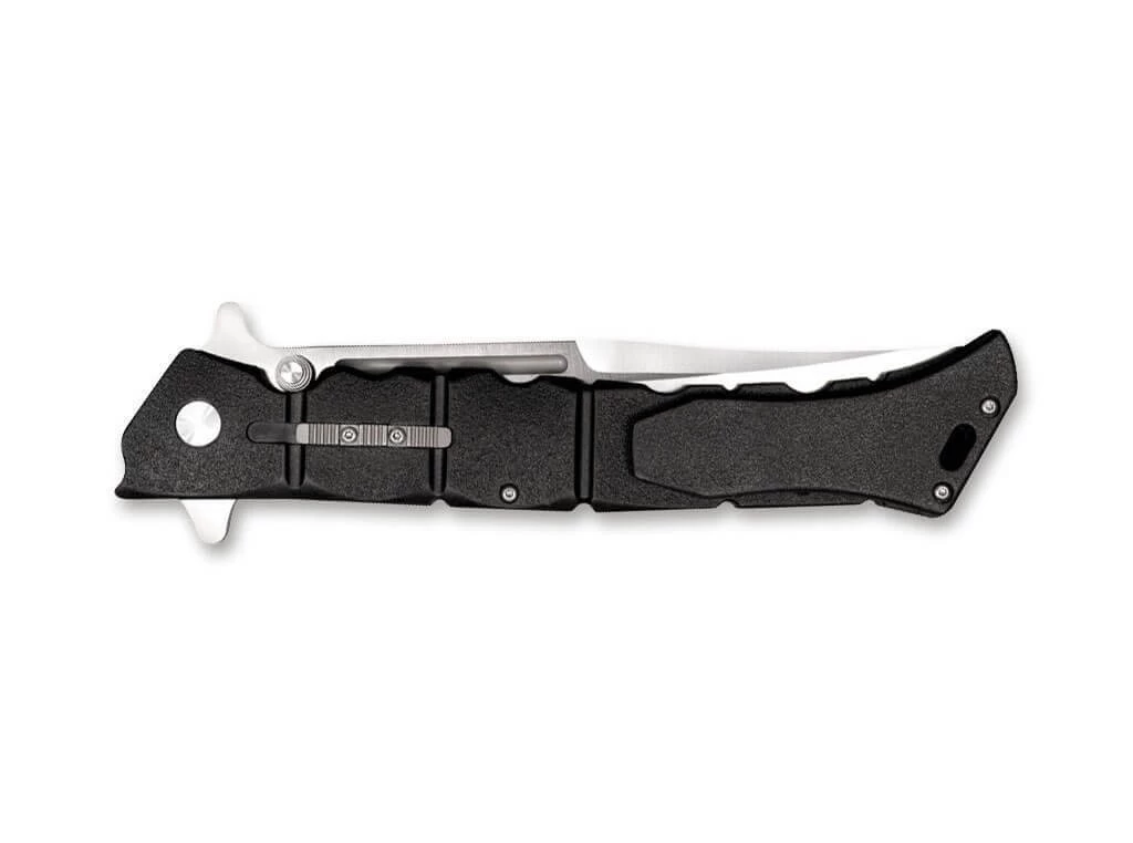 Das beeindruckende Large Luzon wurde von Mike Wallace und Lynn C. Thompson entworfen, dem Gründer und Präsidenten von Cold Steel. Dank seiner schmalen, langen Bauform erinnert das Taschenmesser an ein modernes Balisong, wird aber per Flipper geöffnet. Ein platzsparender Linerlock arretiert die satinierte Klinge aus 8Cr13MoV. Der großzügig dimensionierte Griff aus glasfaserverstärktem Nylon liegt angenehm und rutschfest in der Hand. Mit Fangriemenöse und umsetzbarem Clip (Tip-up/l-r), wodurch das Messer sowohl für Links- als auch für Rechtshänder gleichermaßen gut geeignet ist.