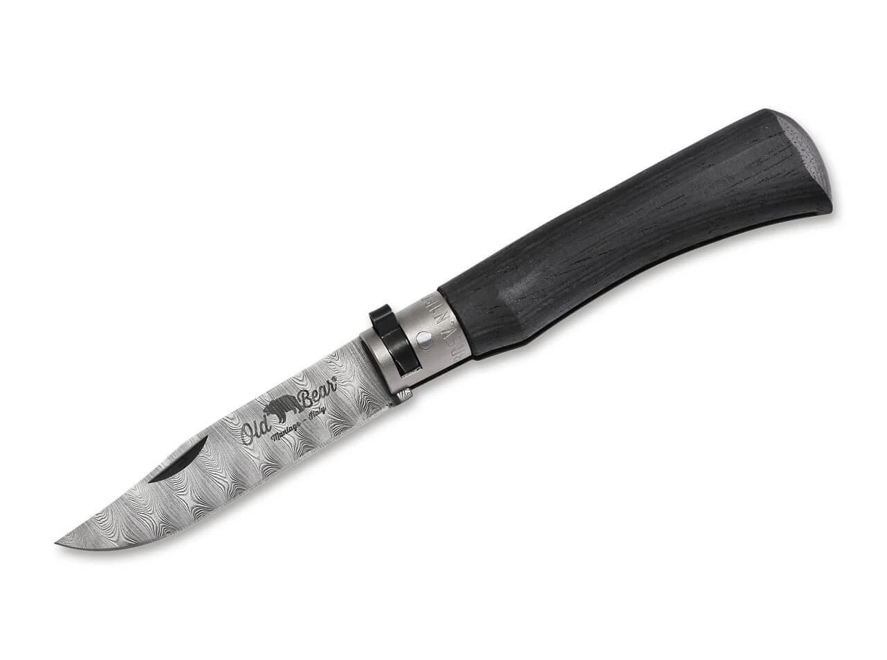 Die exklusive Collection Linie von Old Bear begeistert jeden Liebhaber traditioneller Taschenmesser und vereint klassische Eleganz mit einem Hauch Dolce Vita. Das Collection Damascus Black greift dabei die Gene des Messerherstellers aus dem italienischen Maniago auf und veredelt das Messer mit feinsten Zutaten. Die Klinge aus Damast ist äußerst schnitthaltig und wird per Nagelhau geöffnet. Der Griff aus schwarz gefärbtem Holz liegt angenehm in der Hand und ermöglicht so ein sicheres Arbeiten. Er trägt zudem die Messingzwinge mit dem typischen Twist Lock. Das von Antonini in Italien gefertigte Old Bear Collection Damascus Black wird in einer eleganten Geschenkbox ausgeliefert.