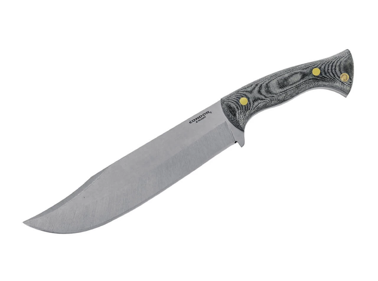 Wer das eindrucksvolle Condor Plan A bei sich hat, braucht ganz sicher keinen Plan B mehr! Die massive Klinge aus nicht rostfreiem 1075 Kohlenstoffstahl ist für den Einsatz als Haumesser, Standhauer oder großes Campknife prädestiniert. Das griffige Micarta der Beschalung und der hinten leicht gekröpfte Griff sorgen für ausgezeichnetes Handling. Lieferung mit Kydexscheide mit Leder-Gürtelschlaufe.