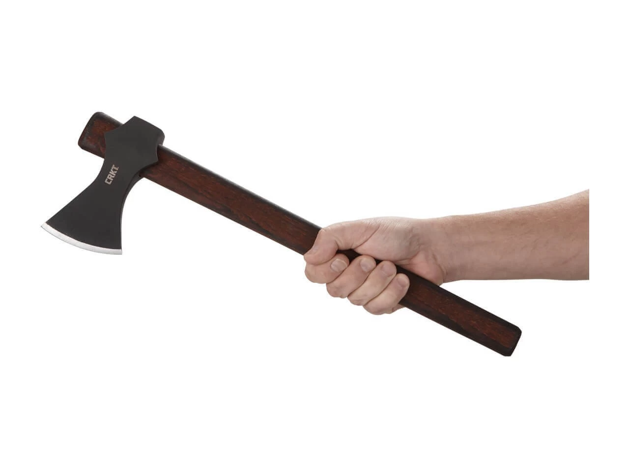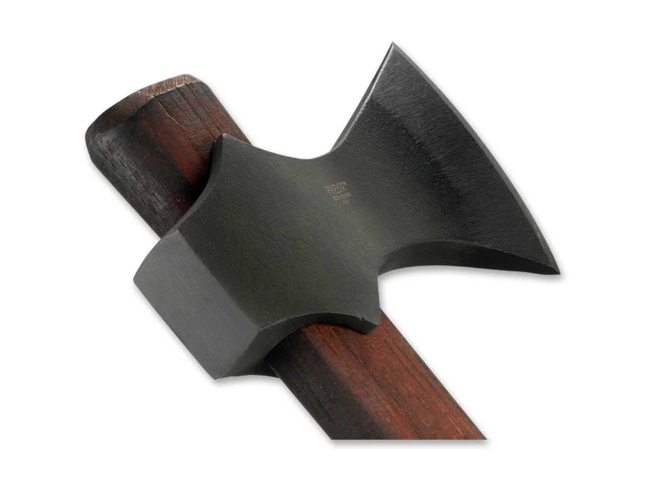 In der nordischen Mythologie gilt Freya als die Göttin der Liebe, der Fruchtbarkeit und des Glücks. Gelegentlich sorgte Ihr Verhalten bei Göttervater Odin jedoch für Missmut, weswegen sie in der Menschenwelt Kriege anfachen musste. Diesen Gedanken verkörpert Elmar Roush in seinem Entwurf der nordisch anmutenden CRKT Freya. Die Axt hat eine Klinge aus 1055 Kohlenstoffstahl und ist mit einer schwarzen Beschichtung zum Schutz vor Korrosion versehen. Der Klingenkopf kann alternativ als Hammer verwendet werden. Der dunkelbraune Griff ist aus robustem Tennessee Hickory Holz gefertigt und eignet sich somit ideal für schwierige Arbeiten.