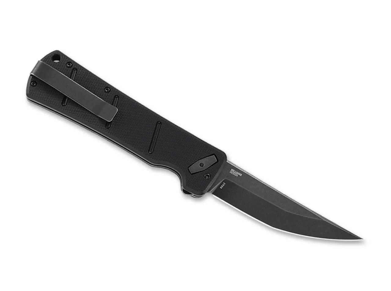 Dieser komplett ein Schwarz gehaltene Entwurf von James Williams verbindet japanische Gene mit taktischer Anmutung. Der Assisted Opener öffnet die D2 Klinge per Flipper und wird vom stabilen Deadbolt Lock gehalten. Der G10 Griff liegt sicher in der Hand und verfügt über eine Fangriemenöse.
