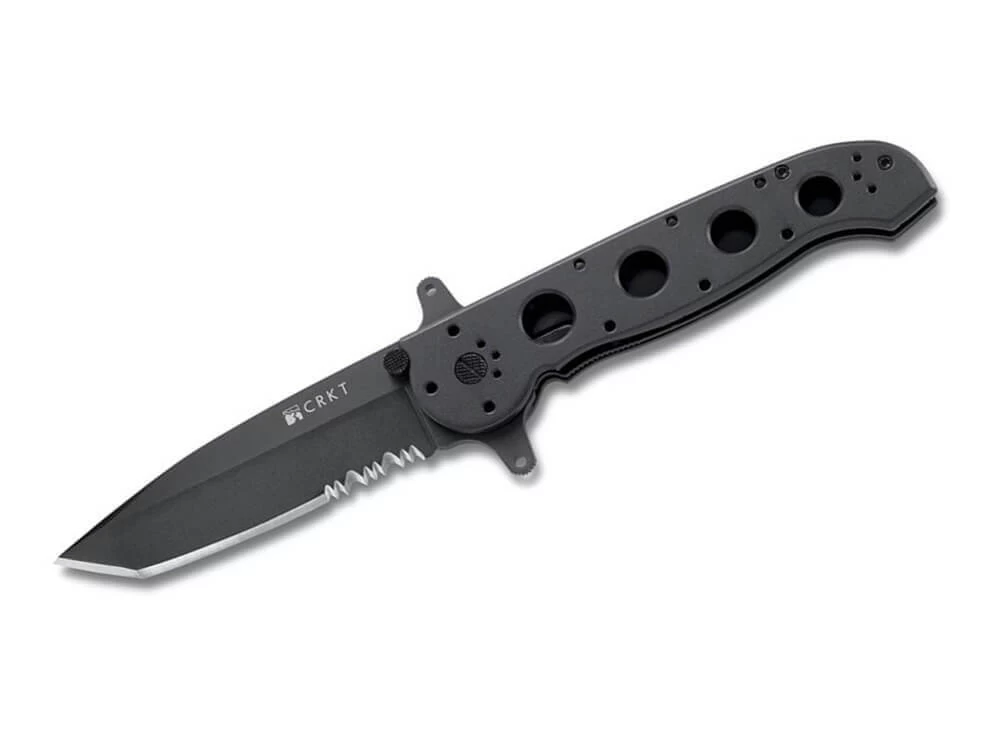 Die große Ausführung des bewährten Einsatzmessers. PVD-beschichtete AUS-8 Klinge und beidseitig ausgeformte Carson-Flippers. Das Messer ist selbstverständlich auch mit der LAWKS-Sicherung ausgerüstet. Schwarz hardanodisierter Aluminiumgriff. Inklusive Clip.