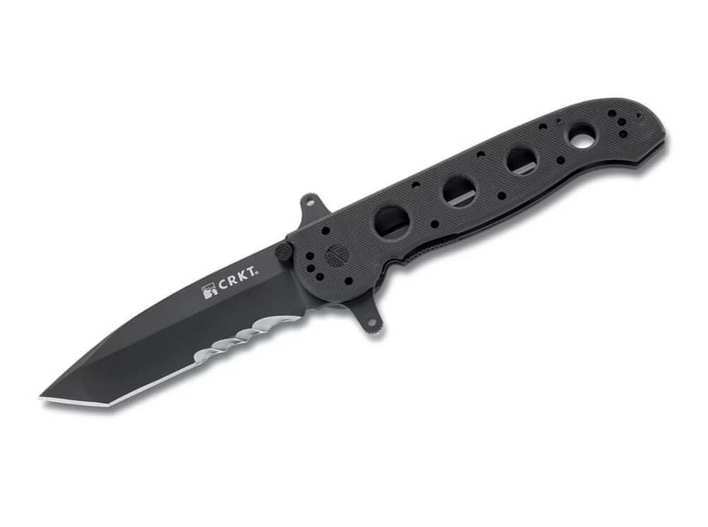 Das sehr erfolgreiche CRKT Design M16 wird jetzt in einer zusätzlichen Serie mit rutschhemmenden und leichtgewichtigen G10-Beschalungen gefertigt, die bei jeder Witterung sicher und angenehm in der Hand liegen. Die zusätzliche Auto-Lawks-Sicherung verhindert ein unbeabsichtigtes Lösen des Liners. Die Tantoversion in der komplett schwarzen Special Forces Ausführung. Die geschwärzte 8Cr14-Klinge verfügt über die aggressive Veff-Serration. Inklusive Clip.