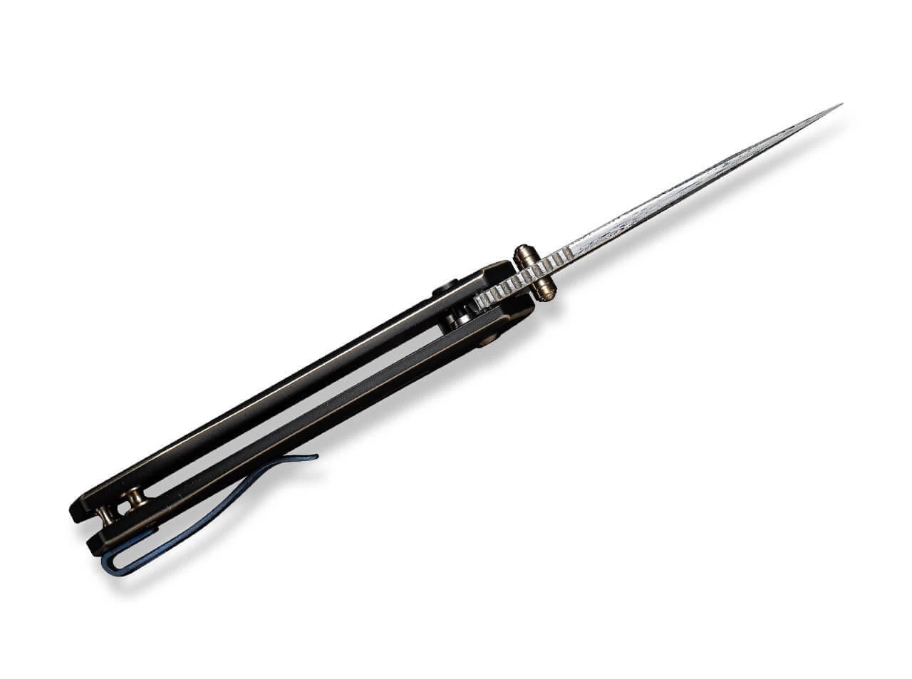 Nur widerspenstige Schneidarbeiten dürften das WE Knife Culex (dt. Mücke) als lästigen Plagegeist erachten. Denn alleine durch die mythische Klinge aus Heimskringla Damast und dem bronzefarbenem Titangriff wird ein Juckreiz im Belohnungszentrum des Gehirns ausgelöst, weshalb der bestechende EDC Folder mit Daumenpin und Button Lock großen Anklang finden wird. Mit Clip (Tip-up/r).