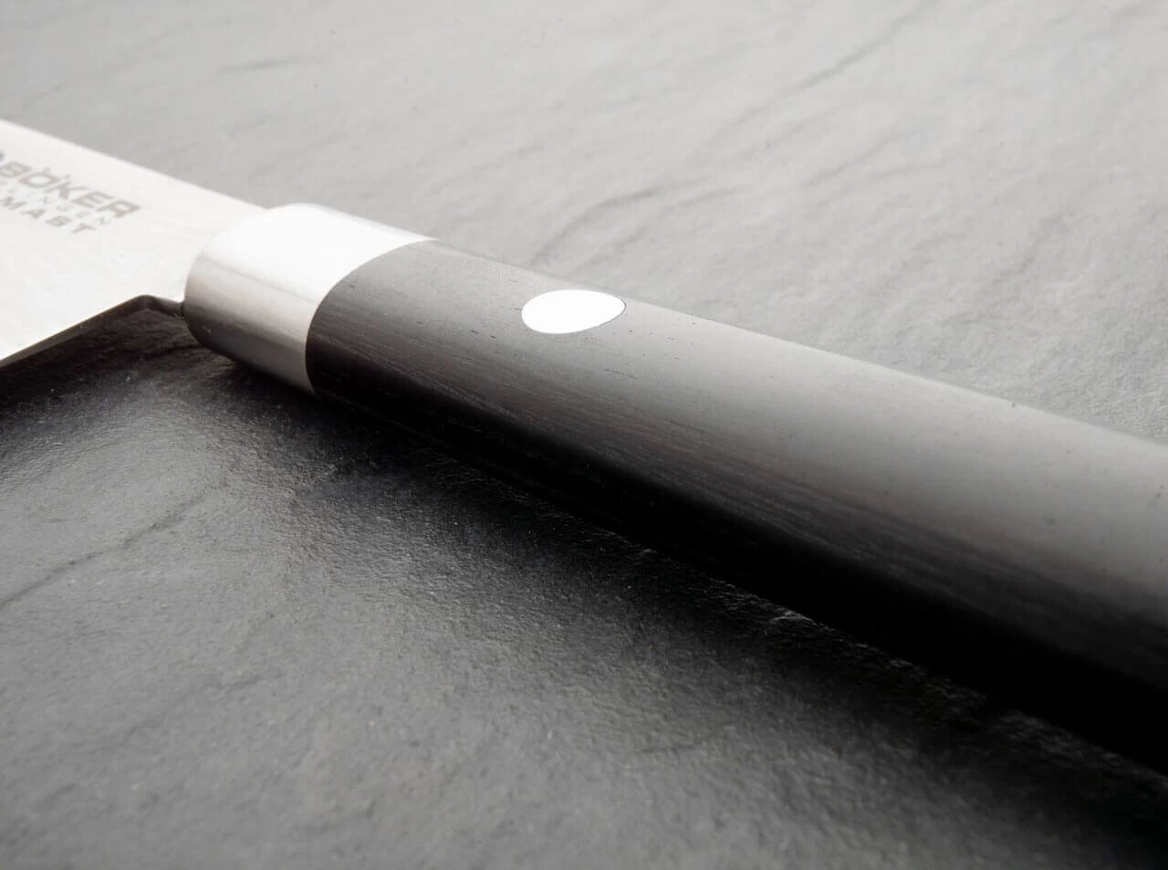 Die Kochmesser-Serie Böker Damast Black verbindet traditionell japanische Griffformen aus schwarzem heimischen Schichtholz mit rasiermesserscharfen Klingen aus rostfreiem Damast mit 37 Lagen Stahl, die sich durch eine wunderschöne Maserung auszeichnen. Der extrem schnitthaltige Kern der Damastklinge besteht aus dem Hochleistungsstahl VG-10. Die spürbare Schärfe beim Schneiden ist atemberaubend und lässt das Kochen zum Erlebnis werden. Die japanische Bauweise des Messergriffs mit den fein mattierten Edelstahlzwingen gibt der Serie ihren besonderen Charakter.