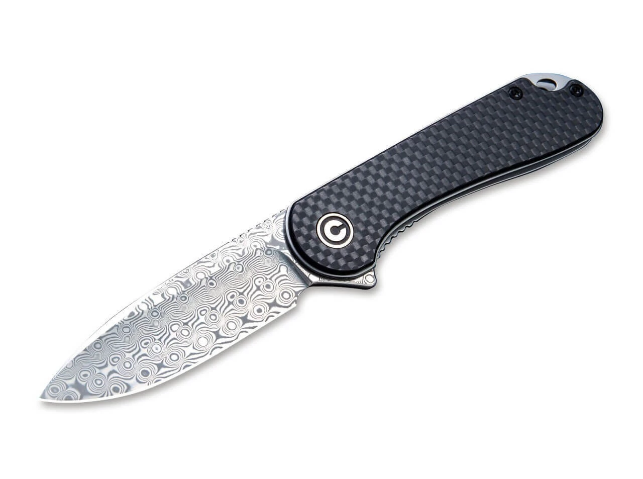 Das schlichte Elementum C907DS von CIVIVI ist mit Griffschalen aus mit Kohlefaser überzogenen schwarzen G10 und einer Klinge aus Damast ausgestattet. Das robuste Auftreten, die Zuverlässigkeit und nicht zuletzt das ausgezeichnete Preis-Leistungs-Verhältnis machen das Elementum zu einer ausgezeichneten Wahl für den Alltag. Die Klinge lässt sich dank des Flippers unkompliziert öffnen und verriegelt per Linerlock. Mit Deep-Carry-Clip und Fangriemenöse (Tip/down).