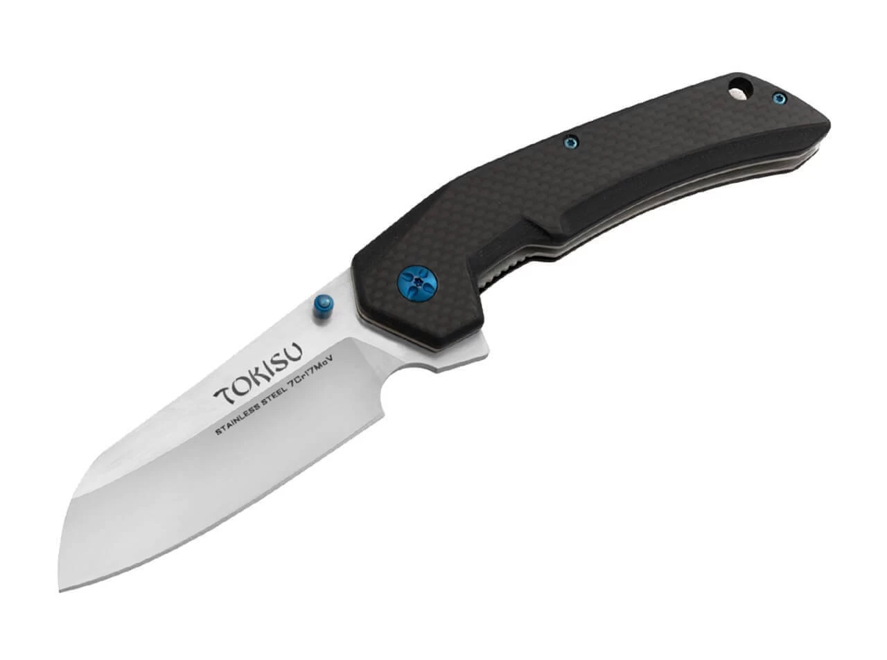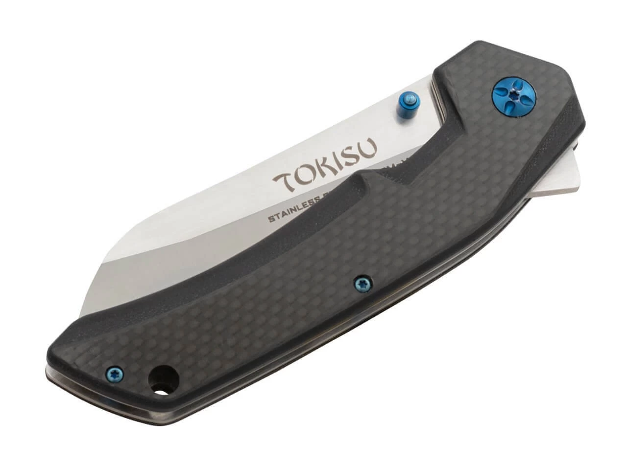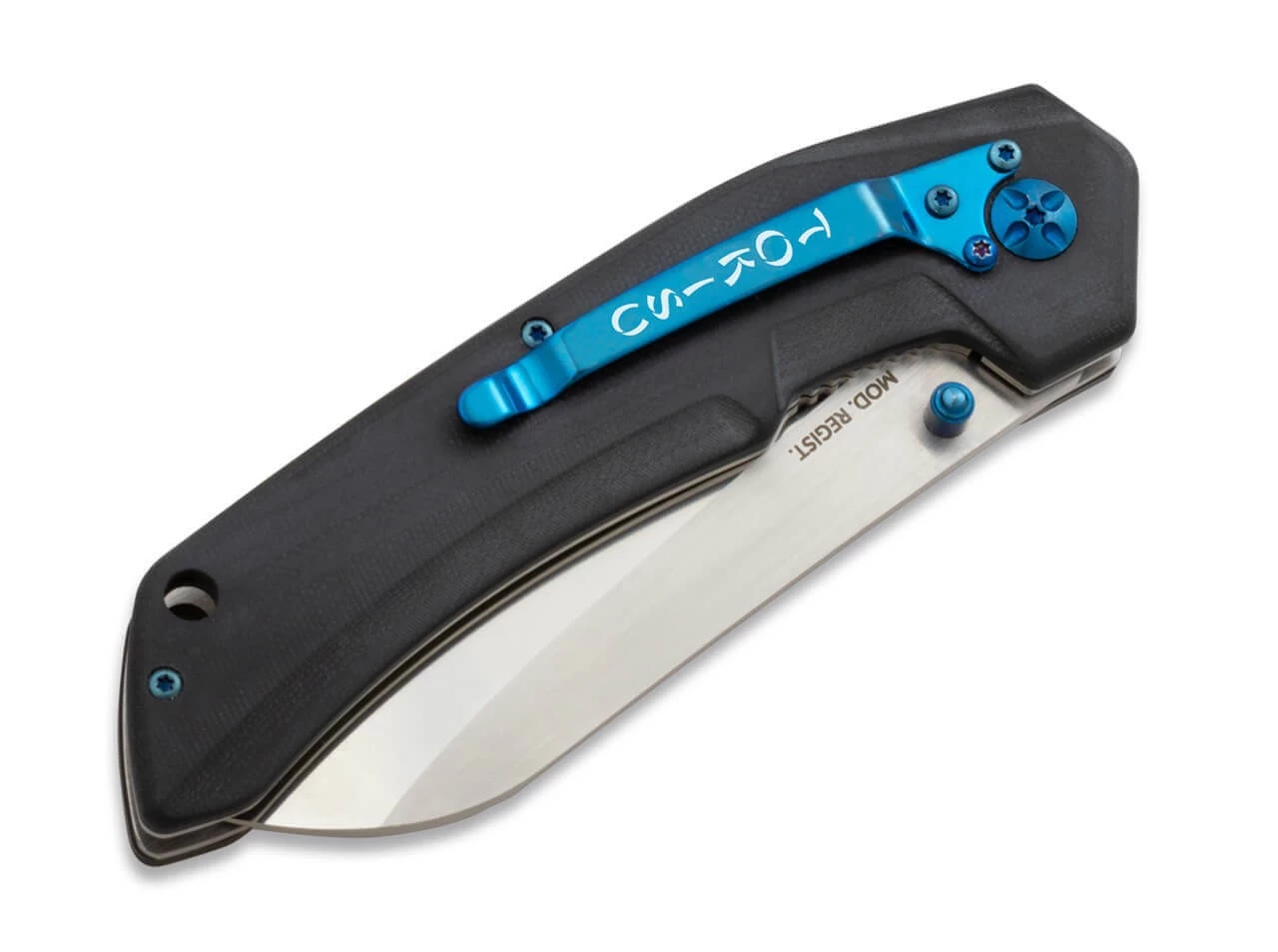 Unter der Sub-Marke Tokisu präsentiert K25 diesen eleganten Tactical-Folder mit einem Griff aus G10 und Kohlefaser. Die Klinge ist kugelgelagert und öffnet per Flipper oder Daumenknopf. Das edle Erscheinungsbild wird betont durch die fein satinierte Klinge und die blaue Hardware des Messers. Mit Clip.