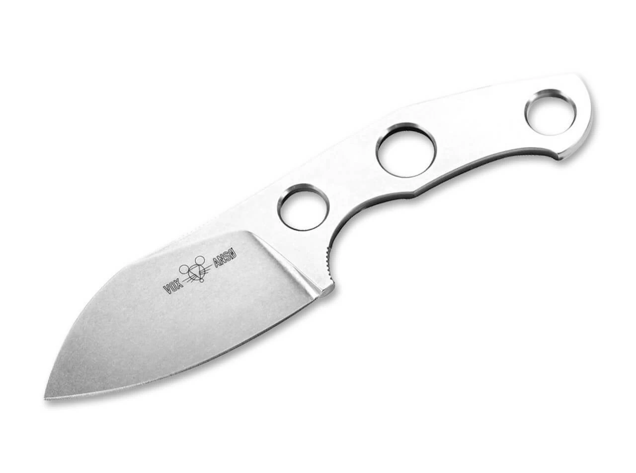 Das edle GMF1 Neck Knife von Jesper Voxnaes und Jens Anso verrichtet die täglichen Schneidarbeiten zuverlässig und schnell. Das in Skelettbauweise konzipierte Messer besteht aus N690 Stahl und ist mit drei großen Löchern im Griff versehen, die einerseits eine Gewichtsersparnis bewirken und andererseits flexible Befestigungsmöglichkeiten bieten. Der ergonomische Griff sowie der Klingenrücken sind mit rutschfesten Riffelungen für eine sichere Handhabe ausgestattet. Lieferung mit hochwertiger Lederscheide.
