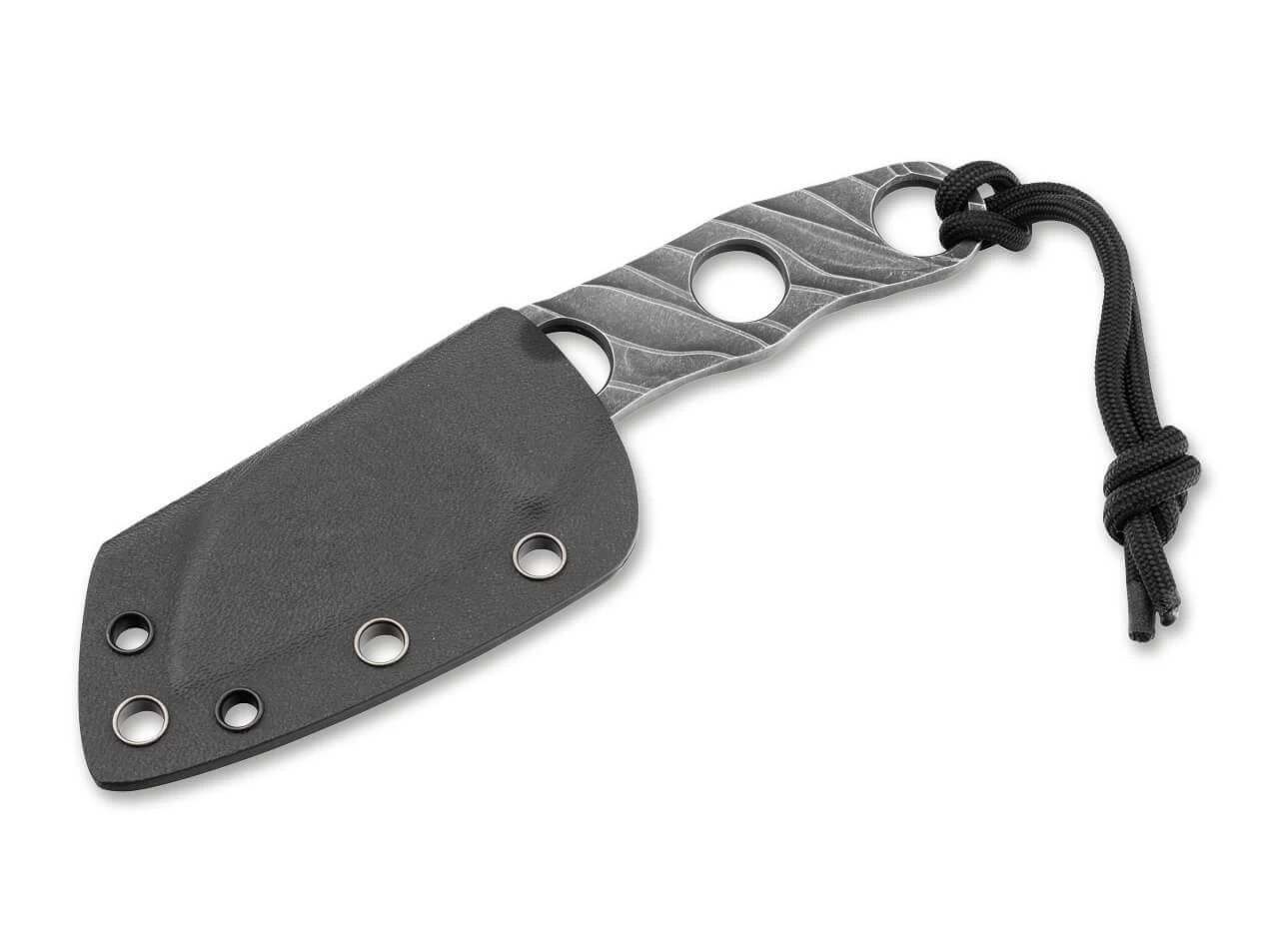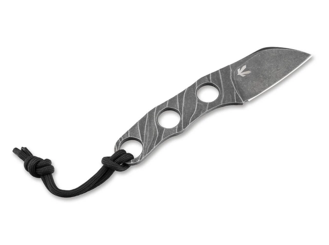 Das von Alexander Krava entworfene Böker Plus Kazhan ist ein handliches Neck Knife mit kurzer Sheepfoot-Klinge, das sich aufgrund seines geringen Gewichts als ideales Backup-Messer für den Alltag anbietet. Der junge Messermacher aus dem ukrainischen Lwiw legt besonderen Wert auf die Ästhetik seiner Entwürfe, die nicht nur als zuverlässige Werkzeuge, sondern auch als hochwertige Accessoires überzeugen. Das in Skelettbauweise gefertigte Kazhan besteht aus D2 und ist mit einem dunklen Stonewash-Finish versehen. Gewichtsreduzierende Aussparungen und dreidimensionale Fräsungen verleihen dem Messer eine ganz besondere Anmutung. Mit Lanyard, Kugelkette und passgenauer Kydex-Scheide.