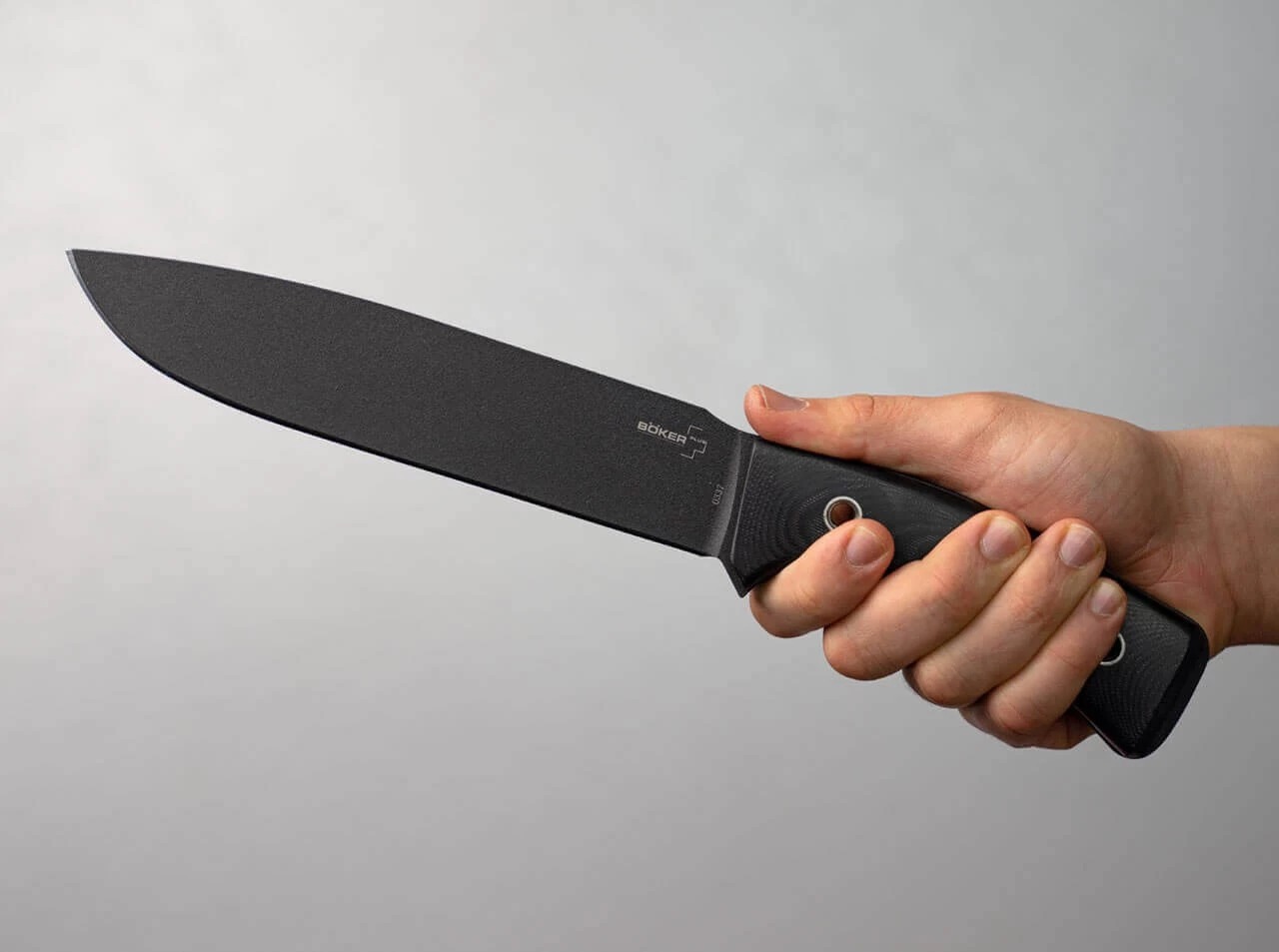 Das vom ungarischen Messermacher Sándor Hegyes entworfene Böker Plus Komondor ist ein praxistaugliches, überaus strapazierfähiges Camp- und Outdoormesser. Die aus hochwertigem SK-5 gefertigte Vollerl-Konstruktion ist mit aufgesetzten Griffschalen aus rutschfestem G10 ausgestattet. Die großen Hohlnieten im Griff senken nicht nur das Gewicht, sondern ermöglichen auch die Anbringung eines Fangriemens. Gerade im Outdoorbereich ist eine Klinge aus Kohlenstoffstahl für viele noch immer die erste Wahl, denn die leichte Nachschärfbarkeit stellt gerade in der Wildnis natürlich einen enormen Vorteil dar. Die dunkle Pulverbeschichtung der wuchtigen Klinge sorgt dabei dennoch für einen ausgezeichneten Korrosionsschutz, während der komplette Flachschliff gleichzeitig ausgezeichnete Schneideigenschaften gewährleistet. Mit praktischer Nylonscheide mit Durchstichschutz.