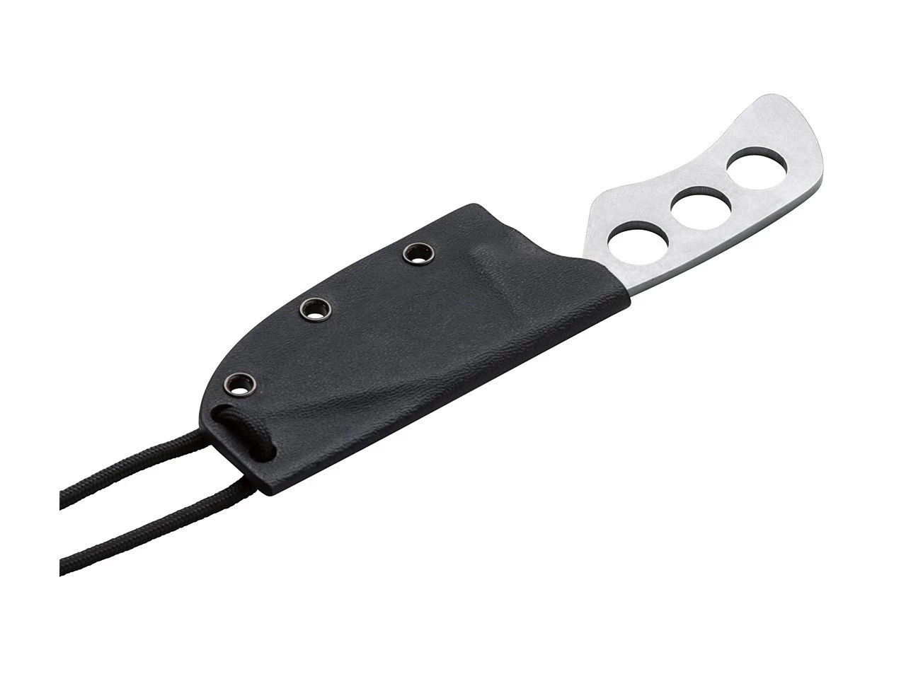 Das handliche, skelettierte Neck Knife aus 440C Stahl ist ein Klassiker von Fred Perrin. Die charakteristischen Linien, die gelungene Ergonomie und der ausgezeichnete Tragekomfort, bedingt durch die Leichtbauweise, haben es zu einem der beliebtesten Entwürfe von Fred Perrin gemacht. Der ideale Begleiter in sämtlichen Lebenslagen, flach, leicht und kompakt. Auslieferung mit Kydexscheide und Trageschnur.
