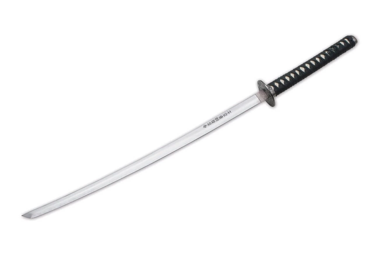 Das Magnum Black Samurai ist ein prunkvolles und reichhaltig verziertes Sammlerschwert, das der Blickfang Ihrer Kollektion werden könnte. Selbst in der hölzernen und schwarz lackierten Scheide macht das Black Samurai eine gute Figur. Die Scheide trägt die handgeschnitzten Kanji (Schriftzeichen) „Großzügigkeit, Mitgefühl und Aufrichtigkeit“. Wird das nicht scharf geschliffene Schwert mit der Kohlenstoffstahlklinge gezogen, so kann man weitere Kanji entdecken, die tief in die Klinge geprägt sind. Diese Zeichen bedeuten: „Seit dem Altertum ist Gott mit denjenigen, die mit Würde und Ehre dienen“. Die antrazitfarbene Tsuba und der traditionell gewickelte Griff runden das würdevolle Erscheinungsbild harmonisch ab. Inklusive Schwertständer aus Holz.