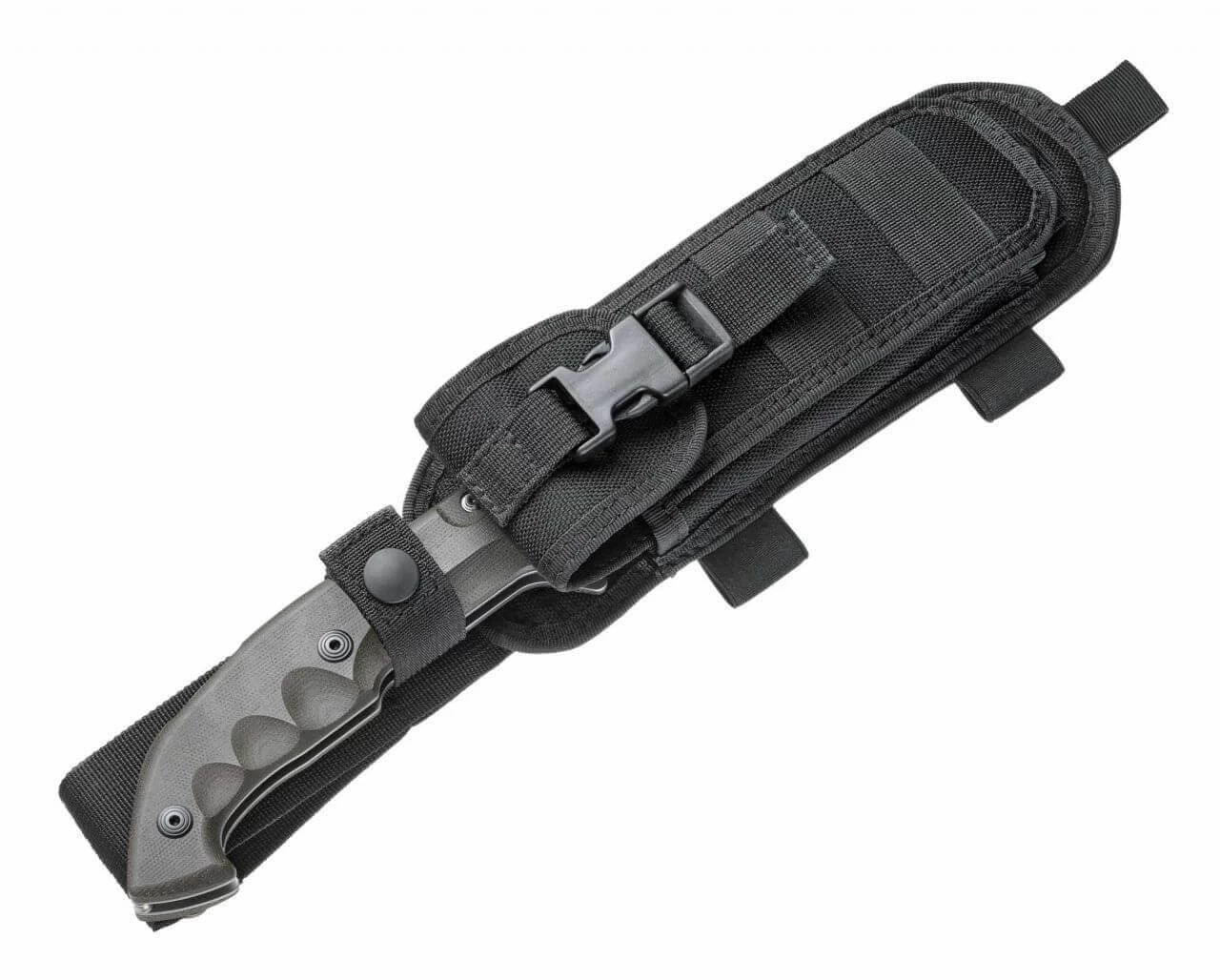 Ein gewaltiges Klappmesser bietet FKMD mit der Klappversion des legendären Trakker an. Es fällt schwer, sich die Dimensionen und die Robustheit dieses Messers vorzustellen, ohne es in der Hand zu halten. Aber schon beim ersten In-die-Hand-nehmen wird klar, dass das Meskwaki Tracker kein Spielzeug ist. Die vorderlastige Klinge und die intelligente Griffgestaltung erlauben eine Vielzahl von Anwendungen, vom Schnitzen über feinere Schneidarbeiten bis hin zum Hacken. Der Lockback kann mit einer Zusatzsicherung gesichert werden, und die ausgeklügelte Cordurascheide bietet die Möglichkeit, das Messer offen oder geschlossen zu tragen. Ein beeindruckendes Messer, das Outdoor und im Einsatz seine Vielseitigkeit und Robustheit voll ausspielt.Gestrahlte Klinge, Griffbeschalung aus grünem Leinenmicarta.