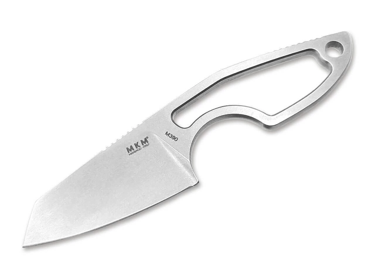 Klein aber fein präsentiert sich MKM Mikro 2 Naked. Das von Jesper Voxnaes entworfene Neck Knife verfügt über eine Sheepfoot Klinge aus hochfestem Böhler M390. Minimalistisch ist bei dieser Version auch der Griff aus Edelstahl, der ohne Griffschalen auskommt. Mit hochwertiger Lederscheide und Lanyard.