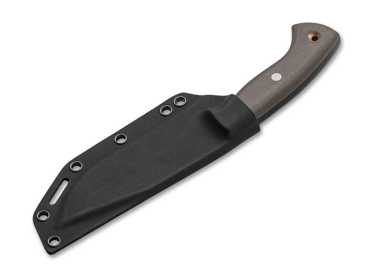 LEBENSLANGE GARANTIE – stabiles Outdoormesser aus pulverbeschichteter 1095 Carbon–Stahl Messer Klinge – mit Micarta Griff-Material und hochwertiger Kydex-Scheide – feststehendes Messer für derbe Beanspruchung mit lebenslanger Böker Garantie!