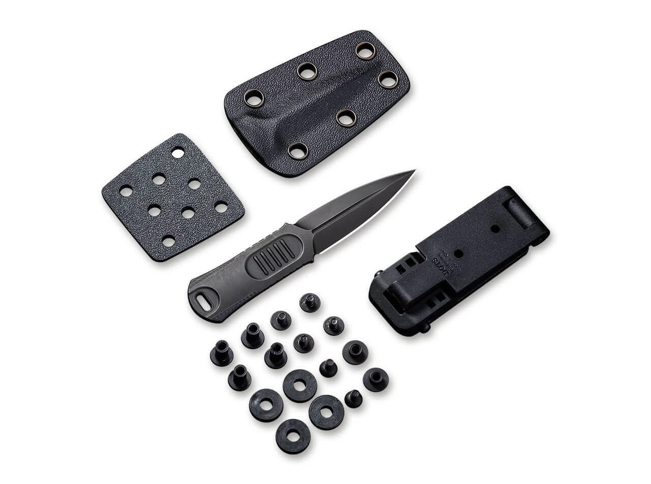 Das kompakte Oss Dagger ist WE Knifes moderne Interpretation eines Dolches. Die beidseitig geschliffene Klinge aus pulvermetallurgischem CPM-20CV ist schwarz beschichtet und verleiht dem Messer eine taktische Anmutung. Der Edelstahlgriff ist mit schwarzen G10 Einlagen versehen, welche sicheren Halt versprechen. Mit Kydexscheide, Kugelkette und Molle Clip.