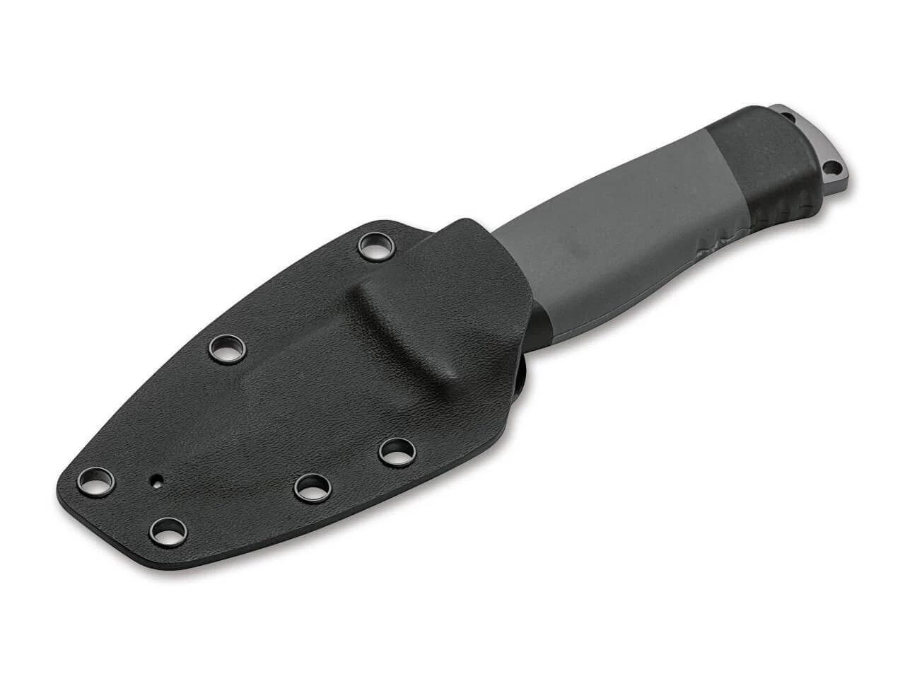 Das überaus kompakte Böker Plus Outdoorsman Mini überzeugt mit den gleichen Griffdimensionen wie das Ursprungsmodell, ist allerdings mit einer deutlich verkürzten Klinge ausgestattet. Das zu einhundert Prozent auf Nutzwert getrimmte Messer eignet sich so besonders gut für das vorsichtige Zerwirken und andere feine Schneidaufgaben. Der durchgehende Erl und die breite Klinge gewährleisten dabei maximale Stabilität. Das hervorstehende Griffende ist als praktische Hammerfläche ausgeformt und zudem mit Bohrungen versehen, die das Anbringen eines Fangriemens ermöglichen. Lieferung mit passgenauer Kydexscheide.