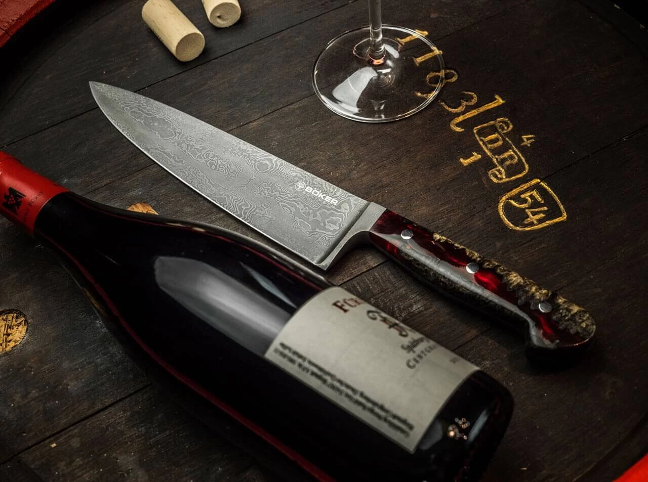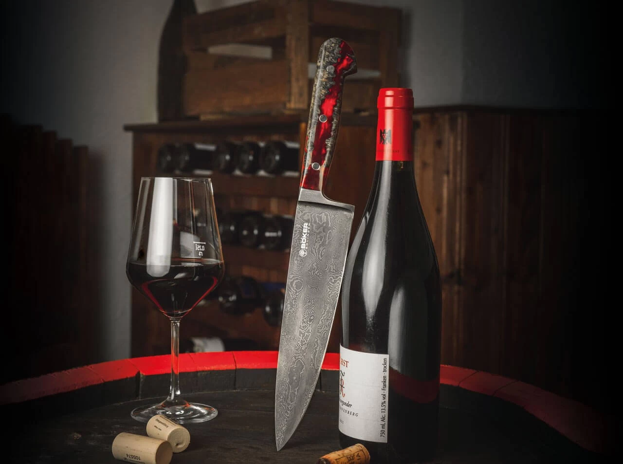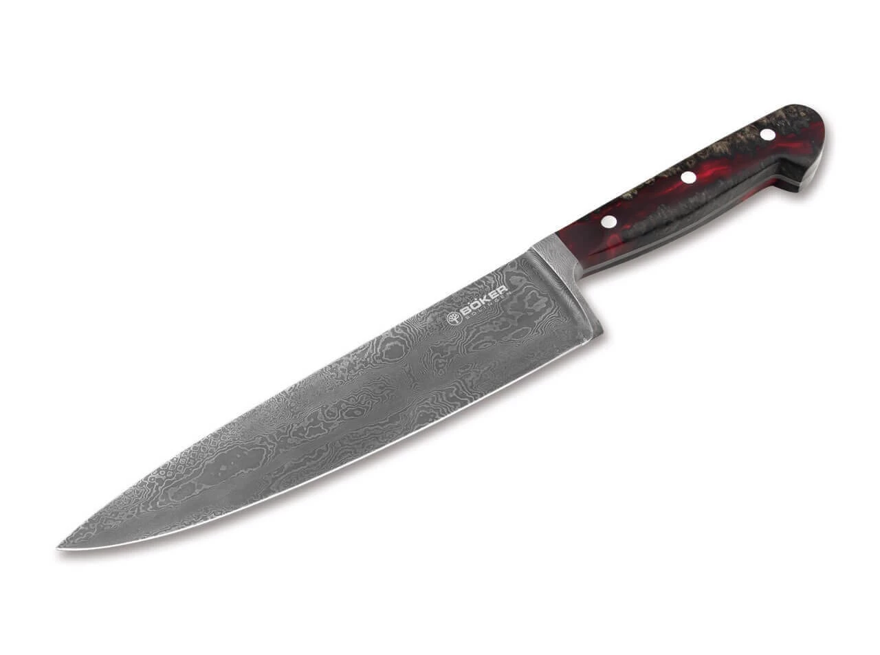 Das beeindruckende Böker River Damast Chefmesser ist im wörtlichen Sinne ein Stück lebendige Geschichte, denn der 180-lagige Damast wurde von Chad Nichols aus einem massiven Teil der Welle eines alten Transmissionsrades unserer Manufaktur geschmiedet. Im nächsten Schritt wird das verschmiedete Spaltstück bei uns in Solingen in der Gesenkschmiede weiterverarbeitet. Nachdem es dort bis zur Rotglut erhitzt wurde, wird es von einem zwei Tonnen schweren Fallbär in einer massiven Form in Kontur geschlagen. Der Griff des außergewöhnlichen Kochmessers im klassischen Solinger Drei-Nieten-Design steht der Klinge optisch und funktional in Nichts nach. Der atemberaubende Tiefeneffekt erinnert an einen mystischen Fluss und wird durch die Kombination von zertifiziert importiertem Amboinaholz mit rotem Harz hervorgerufen. Die Auslieferung des weltweit auf nur 39 Stück limitierten Kochmessers erfolgt mit individueller Seriennummer in einer lederbezogenen Geschenkverpackung und mit Echtheitszertifikat. Handgefertigt in der Böker Messer-Manufaktur Solingen.