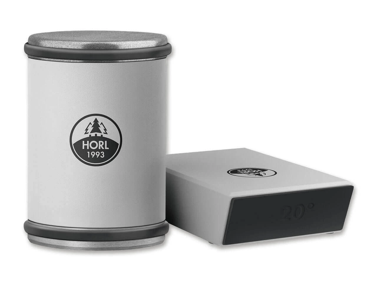 Das Runde gehört ans Eckige – der innovative Rollschleifer HORL 2 Cruise macht das Schärfen von Messern so einfach wie nie zuvor. Das Konzept des manuellen Messerschärfers ist hierbei so einfach wie genial. An den Enden der Rollwalze befinden sich jeweils eine Diamant Schleifscheibe für den Hauptschliff und eine Abziehscheibe aus Edelstahl zum Verfeinern des Schliffbildes. Gehalten wird das Messer an der mitgelieferten Magnetschleiflehre im Winkel von 20°. Die Gummifüße verhindern ein Verrutschen der Führung, so dass es beim Schärfen ab jetzt immer rund läuft. Dank der leicht rollenden Walze und den breiten Gummiringen erhält jedes Messer beim Entlangrollen des HORL 2 Cruise einen gleichmäßigen Schliff. Made in Germany und garantiert ein Kandidat für die HORL of Fame.