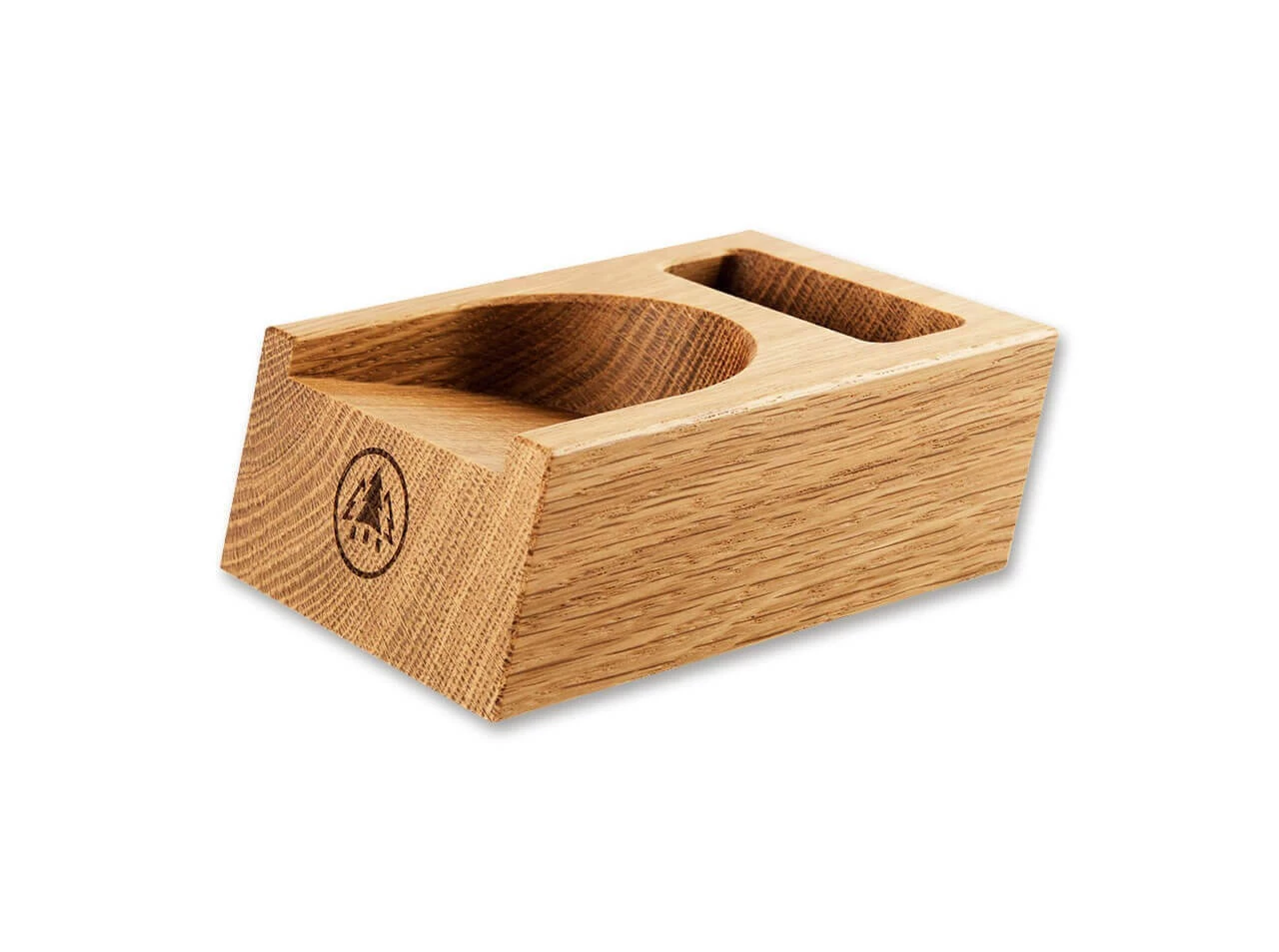 Hochwertige Aufbewahrungsstation für den HORL Rollschärfer und die dazugehörige Magnetschleiflehre. Gefertigt in Deutschland aus massivem Eichenholz.