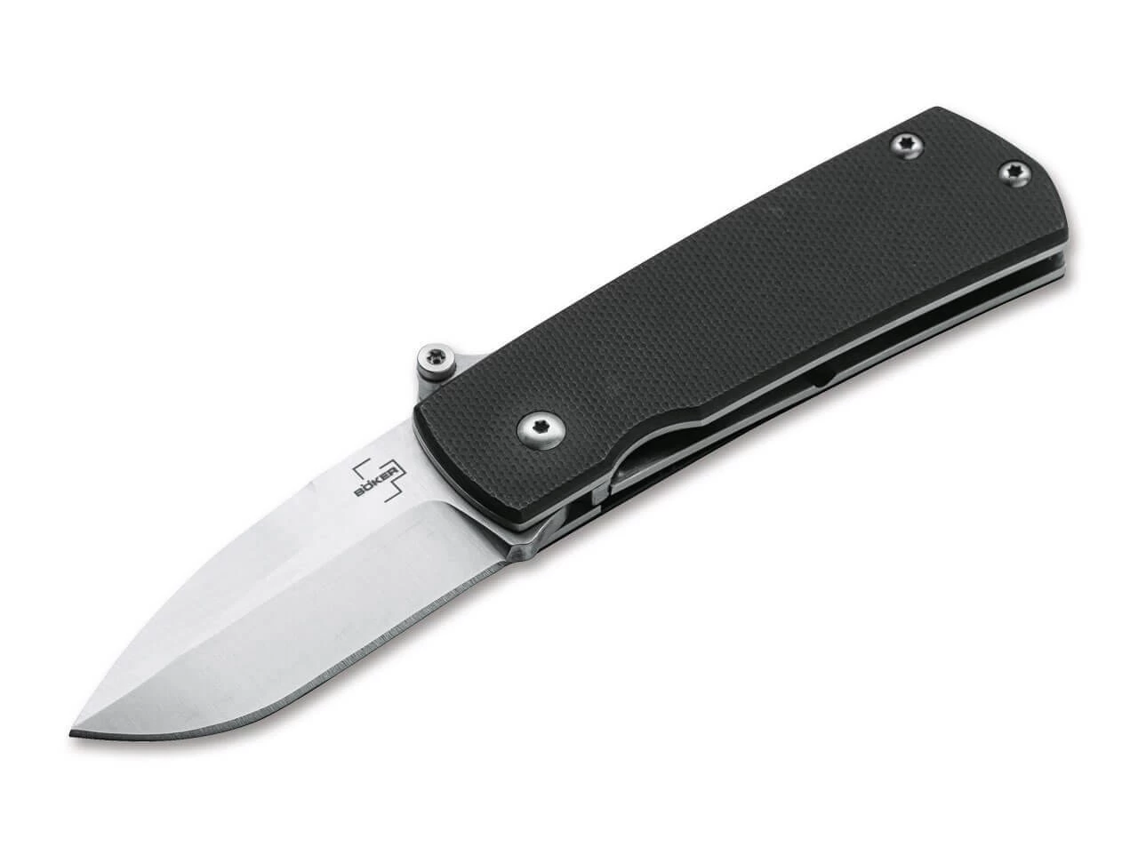 Darriel Caston und Stan Mojzis haben mit dem Böker Plus Shamsher ein minimalistisches Automatikmesser entworfen, das mit einer Gesamtlänge von knapp 12 Zentimetern sicherlich zu den handlichsten Vertretern seiner Art zählt. Die satinierte Klinge aus D2 wird durch das Betätigen des an einen klassischen Flipper erinnernden Auslösers automatisch per Federkraft geöffnet und von einem Linerlock sicher verriegelt. Die flachen Griffschalen bestehen aus texturiertem G10. Mit kleiner integrierter Fangriemenöse und hochwertigem Nylon-Etui zur Aufbewahrung.