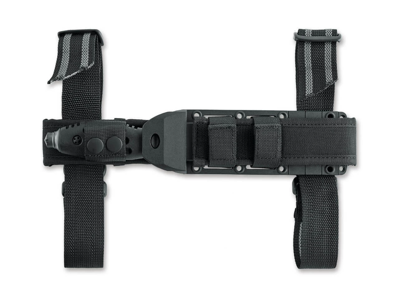 Die FKMD Sputnik Serie glänzt vor allem mit besonders hohem Gebrauchswert und einer extrem sicheren Handlage. Durch das schwarze TPR Griffmaterial ist das Sputnik 11 auch bei Nässe oder Kälte sehr komfortabel und sicher zu handhaben, wozu die zahlreichen Mulden und Rillen ihren Teil beitragen. Das kleine integrierte Parierelement trägt ebenso eine Öse wie der Glasbrecher im Griffende, wodurch sich das feststehende Messer zum Beispiel auch an einem Stock festbinden lässt. Die satinierte Klinge aus N690 ist mit ihrer außergewöhnlichen Stärke von 5mm optimal dimensioniert, um Schneidpotential und Stabilität zu vereinen. Die Fehlschärfe der Drop-Point Klinge unterstreicht den taktischen Charakter des Einsatzmessers. Die äußerst funktionale symmetrische Scheide ist aus GFK gefertigt und sitzt in einem Molle-kompatiblen Nylonhalter mit Gürtelschlaufe und abnehmbaren Beingurten.