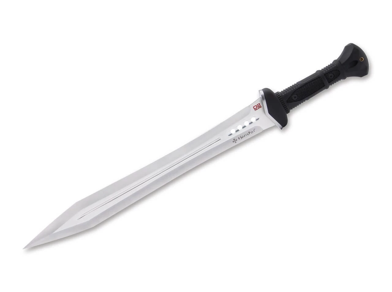 Nur die stärksten und tapfersten Gladiatoren ernteten nach ihren aufreibenden Kämpfen Ruhm und Respekt vom Imperator und Pöbel. Zu den Standardwaffen der antiken Berufskämpfer zählte einst der Gladius, das wohl bekannteste römische Schwert. United Cutlery lässt das alte Rom wiederaufleben und präsentiert das Honshu Gladiator Sword. Seine Klinge aus rostfreiem D2–Stahl ist mit einer Hohlkehle und gewichtsreduzierenden Durchbrüchen versehen. Der strukturierte und geriffelte Griff aus spritzgegossenem TPR liegt sicher in der Hand, während das typisch kurze Parierelement und der Knauf am Griffende das historische Profil abrunden. Lieferung mit hochwertiger Lederscheide.