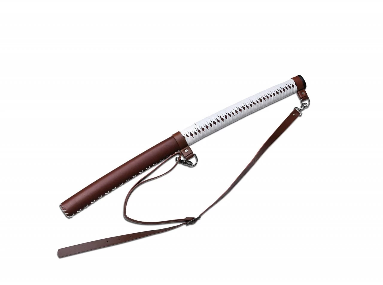 In der dritten Staffel der erfolgreichen Serie aus Amerika kommt ein neuer Charakter vor, die Schwertkämpferin Michonne, die dieses beeindruckende Schwert gekonnt führt. Die Klinge ist aus 1045 Kohlenstoffstahl gefertigt. Die typische Form des Schwertes gleicht einem traditionellen Katana, mit einem gewickeltem Griff und goldfarbenen Menukis. Die Scheide kann auf dem Rücken getragen werden und rundet das Gesamtbild Schwertes sehr gelungen ab. Mit Authentizitätszertifikat. Deko- bzw. Sammlerschwert, nicht zum Einsatz geeignet!