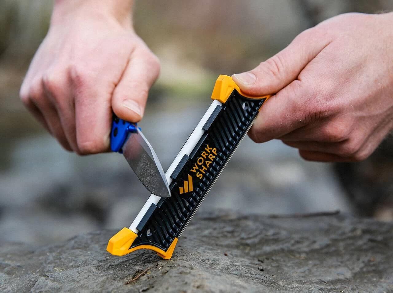 Als besonders kompakter Schärfer für Revier und unterwegs zeichnet sich der Work Sharp Guided Pocket Sharpener vor allem durch die integrierten Winkelführungen aus, die das professionelle Schärfen auch dem weniger versierten Nutzer leichtmachen. Zum Schärfen steht eine Diamantfläche in der Körnung 320 zur Verfügung, der Feinabzug wird auf dem gegenüber angebrachten Keramik-Schleifstab vorgenommen. Die kompakte Bauweise und das geringe Gewicht prädestinieren den Schärfer als leichtgewichtige Schärfmöglichkeit für die Jackentasche oder den Rucksack.