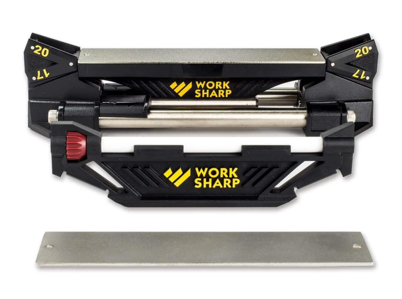 Das Work Sharp Guided Sharpening System ist die Allround-Lösung zum Schärfen von Messern und anderen Klingen. Das Schärfgerät verfügt über das innovative Pivot-Response-System, das sich der Form der Klinge anpasst und das manuelle Schärfen somit noch schneller, einfacher und präziser macht. Das adaptive System kann zusätzlich gesperrt werden, so dass auch Anfängern die perfekte Schärfe auf Anhieb gelingt. Das Set umfasst einen verstellbaren Tischschärfer mit Winkelführungen von 17° und 20°, austauschbaren Diamantplatten (grobe bis feine Körnung), einen winkelgesteuerten Schärfer samt Keramikstab in den Ausführungen grob, fein und für Angelhaken sowie zwei Keramikstäben mit kleinem Durchmesser für den perfekten Wellenschliff. Schärft Taschenmesser, Jagdmesser, Werkzeuge und mehr.