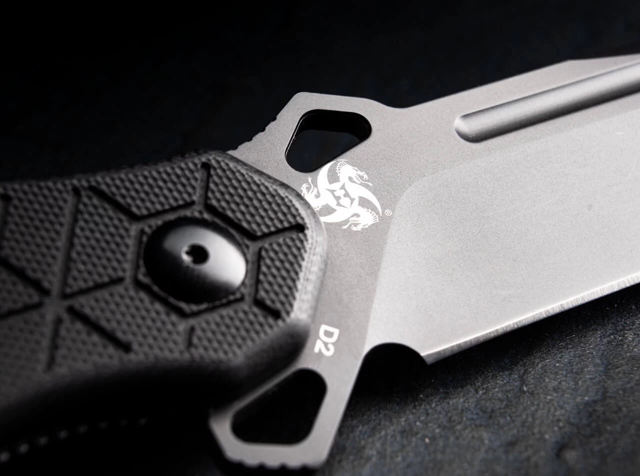 Ihre modernen Entwürfe vereinen ihre Erfahrungen aus all diesen Bereichen und machen das Yokai zu einem absoluten Ausnahmemesser. Die modifizierte Tanto-Klinge aus D2 ist mit einer widerstandsfähigen schwarzen Beschichtung versehen ist, wird per Flipper geöffnet und von einem stabilen Linerlock zuverlässig gesichert. Die in einem modernen Wabenmuster texturierten Griffschalen liegen auch bei schlechten Witterungsbedingten optimal in der Hand, zudem sorgen die geriffelte Daumenrampe und die ergonomische Zeigefingermulde für zusätzlichen Grip. Der rote Spacer aus Aluminium sorgt für einen farblichen Akzent. Mit Fangriemenöse, Glasbrecher und praktischem Clip (tip-up/r). Lieferung in einem hochwertigen Nylon-Etui zur Aufbewahrung.